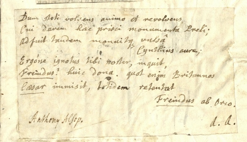 Los versos latinos de una guarda nos permiten afirmar que el incunable de Julio César, hoy perteneciente al Archivo Histórico, fue propiedad de un médico humanista inglés.