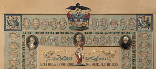 [7] Luz G. Sinning, “Entre una alegoría y un escudo, un documento se hace monumento. El facsímil del Cuadro conmemorativo del Acta de la Revolución del 20 de Julio de 1810”, en Castro, D. y otros (2012).