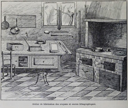 Taller de fabricación de lápices y tintas litográficas. Fuente: Lemercier, A. (s. f.).
