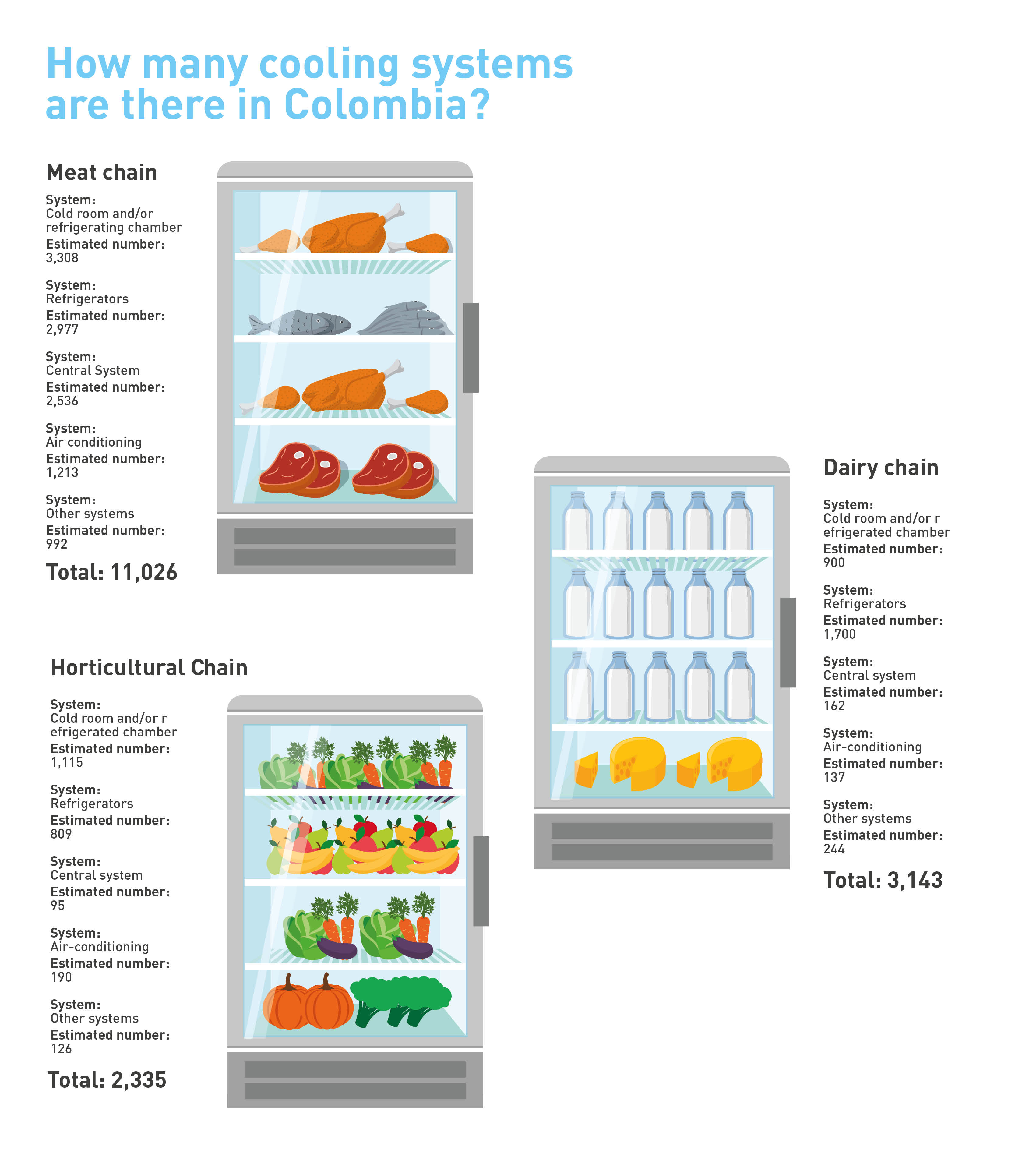 Among the most remarkable results of the study is the identification of the cooling sys - tems of the meat and dairy sectors becoming obsolete given that their lifespans are between 10 and 20 years. The previous point gives the UTO a chance to develop informative campaigns on the significance of having cooling systems that do not damage the ozone layer, among other reasons, because the protocols and Colombian law already require it