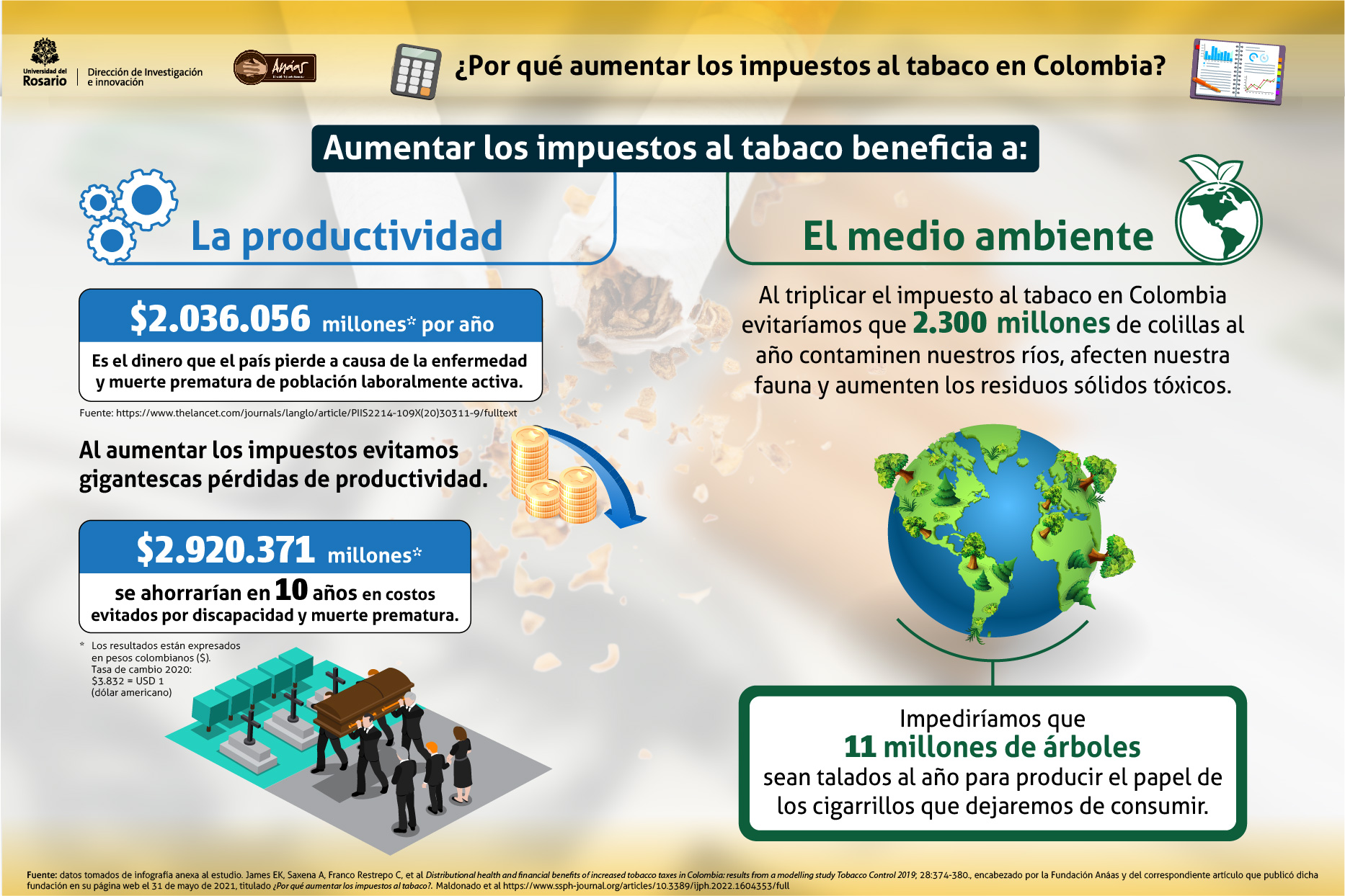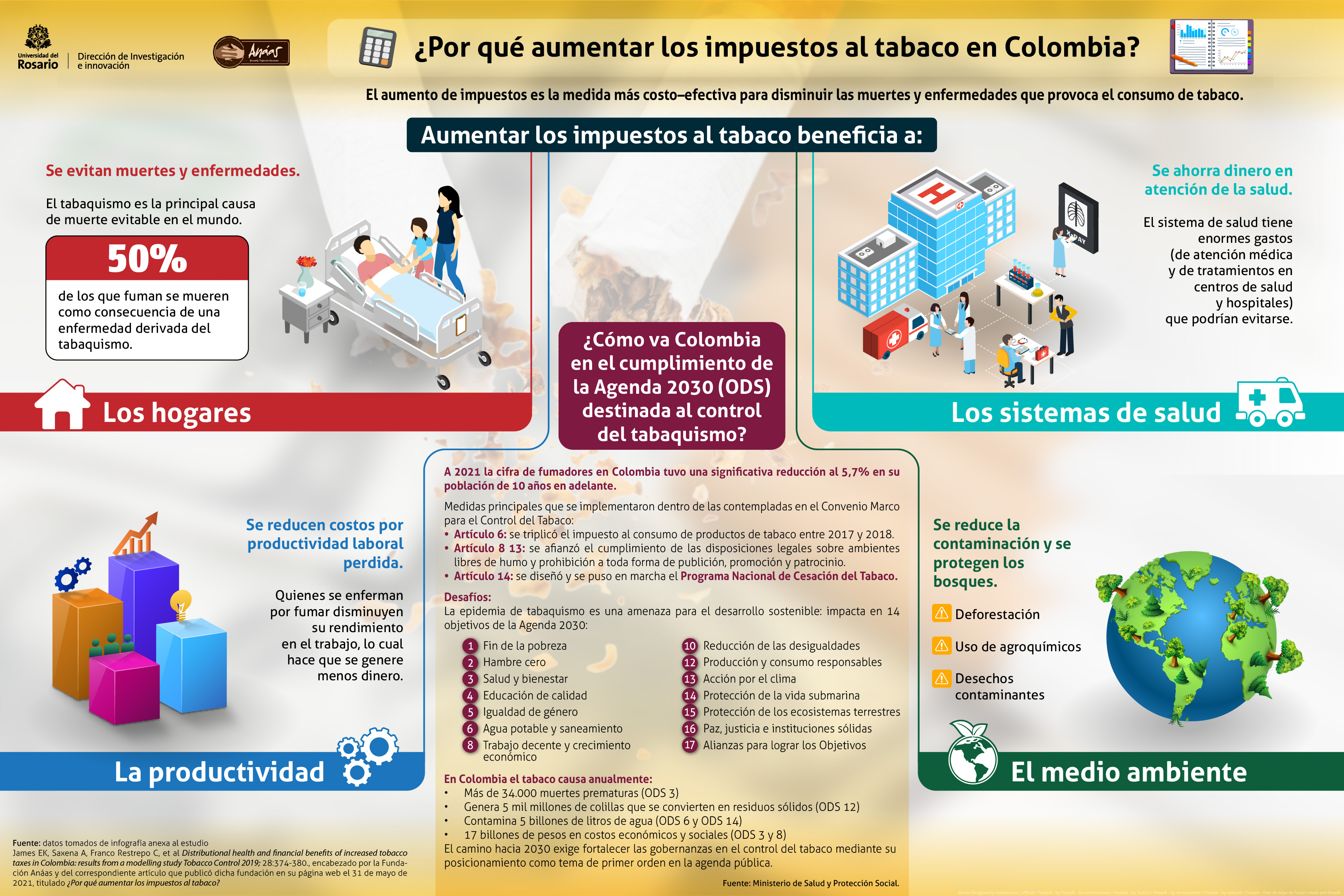 Evidentemente, “no solo este estudio, sino otros realizados por la Fundación Anáas y otros grupos de investigación en la región evidencian que Colombia todavía soporta un buen rango de aumento de los impuestos al tabaco”, opina, por su parte, el investigador Juan Miguel Gallego Acevedo, director de Investigación e Innovación de la Universidad del Rosario, profesor de la Facultad de Economía de la misma Institución y líder del grupo de investigación del estudio.