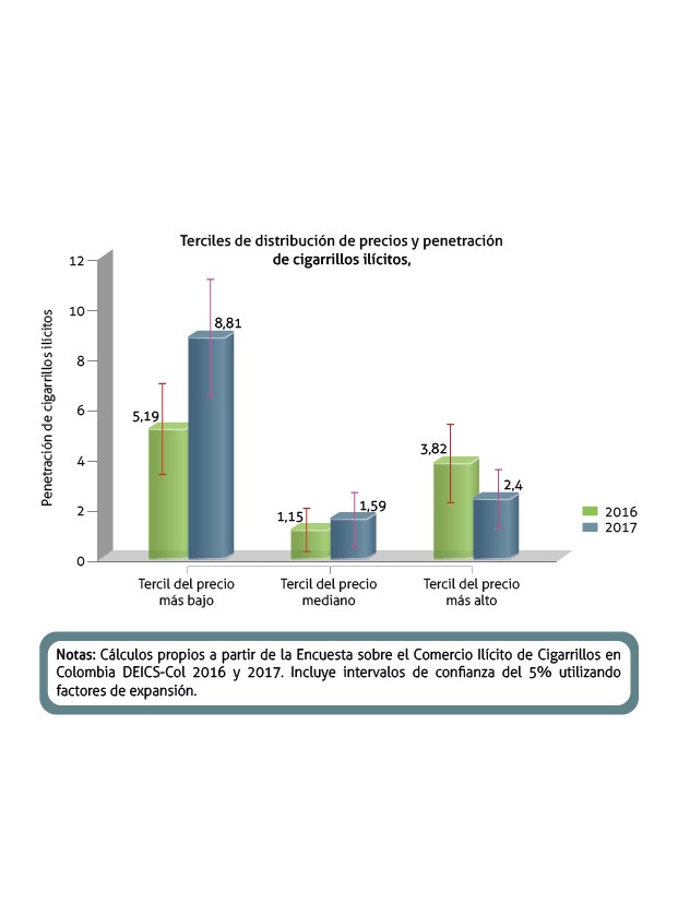 Gracias a esta condición exclusiva de los impuestos que benefician a la salud pública, el grupo de investigadores pudo establecer que para los cigarrillos más caros, el impacto del aumento del impuesto sería relativamente pequeño de cara al consumidor final y que los precios de este tipo de cigarrillos están afectados por otras variables como la dinámica del mercado, los gustos personales, la tasa de cambio, la migración de países vecinos como Venezuela, etc. Mientras tanto, para los cigarrillos más baratos, el aumento del precio como consecuencia del incremento de los impuestos sí impactaría fuertemente el bolsillo de los consumidores, ya que prácticamente implicaría doblar el precio de la cajetilla.