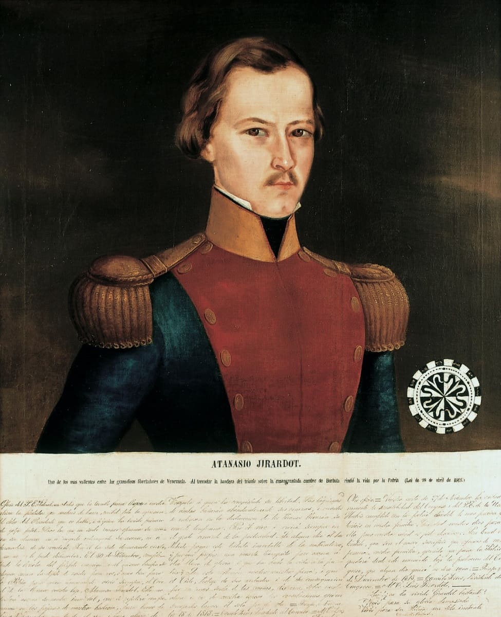Atanasio Girardot (1791-1813), antioqueño de nacimiento, estudió en el Claustro Gramática, Filosofía y Derecho civil, entre los años 1804-9. De las aulas pasó a los cuarteles: participó en la campaña del Sur y en la campaña Admirable. Su corta vida acabó en la acción heroica del cerro de Bárbula, cuando tenía 22 años.
