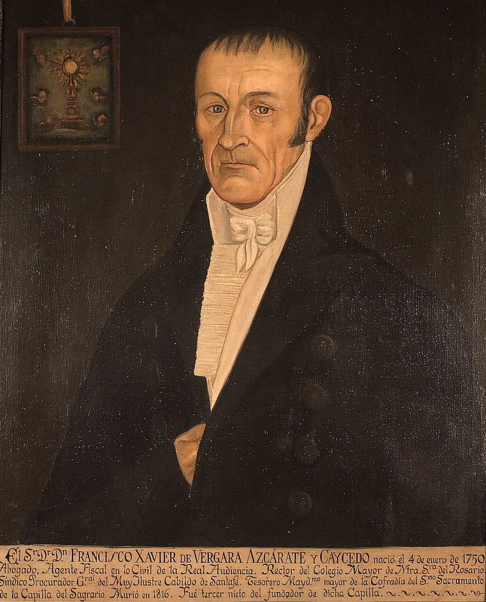 Francisco Javier de Vergara y Caicedo (1750-1816), natural de Santafé y de familia de rectores, ingresó al Colegio en 1764. Graduado en Jurisprudencia, ocupó la rectoría en el periodo 1812-14. Durante los acontecimientos revolucionarios, participó en la Suprema Junta de Gobierno.