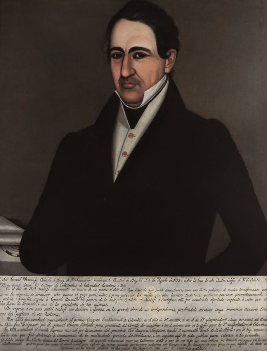 Domingo Caicedo Sanz de Santamaría (1783-1843), natural de Santafé, vistió la beca de colegial en 1793. Completó los estudios de Filosofía y Teología en el Colegio Mayor, donde después ocupó la vicerrectoría y la consiliatura.