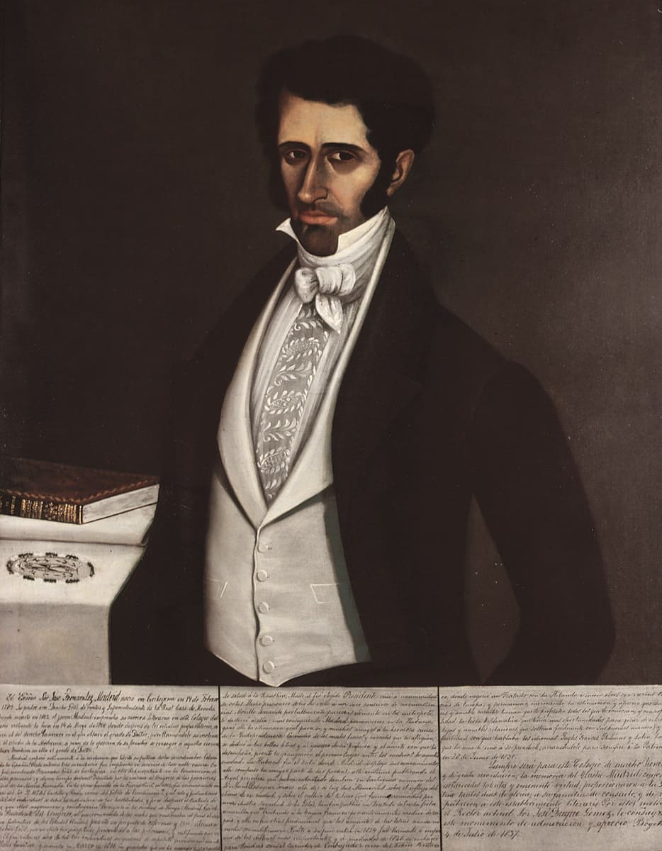 José Fernández Madrid (1789-1830), cartagenero de nacimiento, allí inició los estudios que continúa en este Colegio Mayor, cuya beca vistió en 1805. Obtuvo el grado de bachiller en Filosofía y cursó tres años de Medicina (1805-7). En Cartagena, se vinculó al proceso revolucionario, que rápidamente lo llevaría al triunvirato que gobernó las Provincias Unidas. Cuando la Reconquista, salvó la vida abandonando la causa nacional. Vivió en el exterior, donde cultivó su profesión y las letras, así como el periodismo.