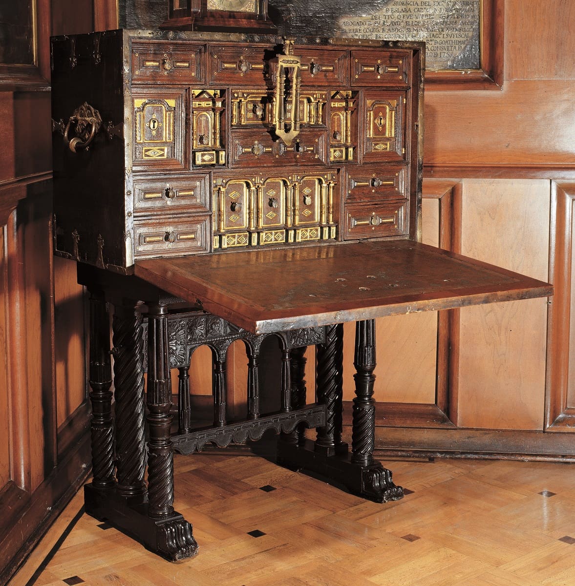 El escritorio perteneció al Dr. Miguel José Masústegui y llegó al Colegio Mayor como herencia, en 1796.