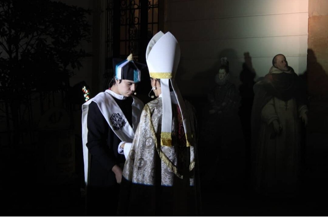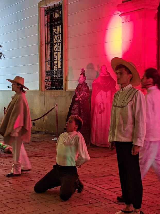 Producida por el Museo de la Universidad del Rosario, con libretos de Nicolás Riascos y codirigida entre el autor y Gabriela Franco, contó con la participación de la comunidad rosarista, incluyendo a Boris Solórzano, quien ha trabajado en los últimos años en la Universidad, como parte del equipo encargado de las labores de mantenimiento de la capilla de la Bordadita. Y también, con varios estudiantes de diferentes facultades y carreras. Fueron varias horas de ensayo, en los que cada uno de los actores se esforzó por comprender de la mejor manera los hechos narrados y por transmitirlo a los espectadores que ovacionaron función tras función el esfuerzo del Museo de hacer tangible la historia por algunos minutos.