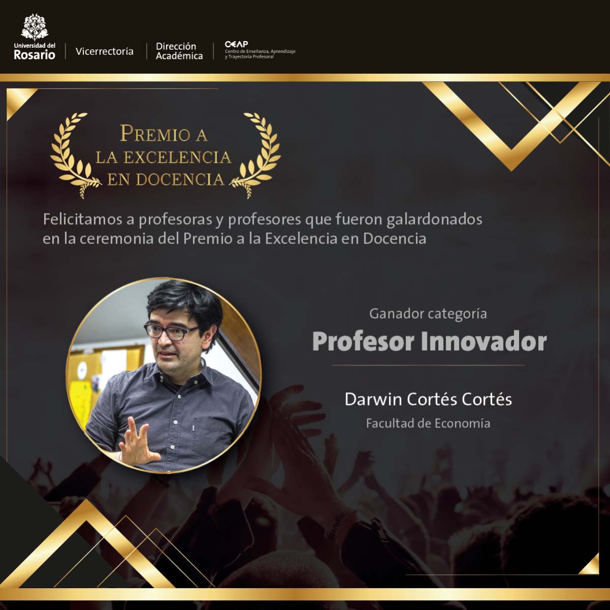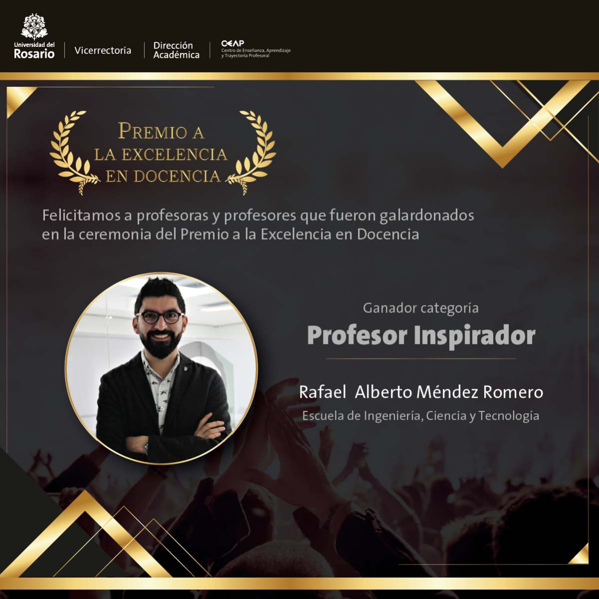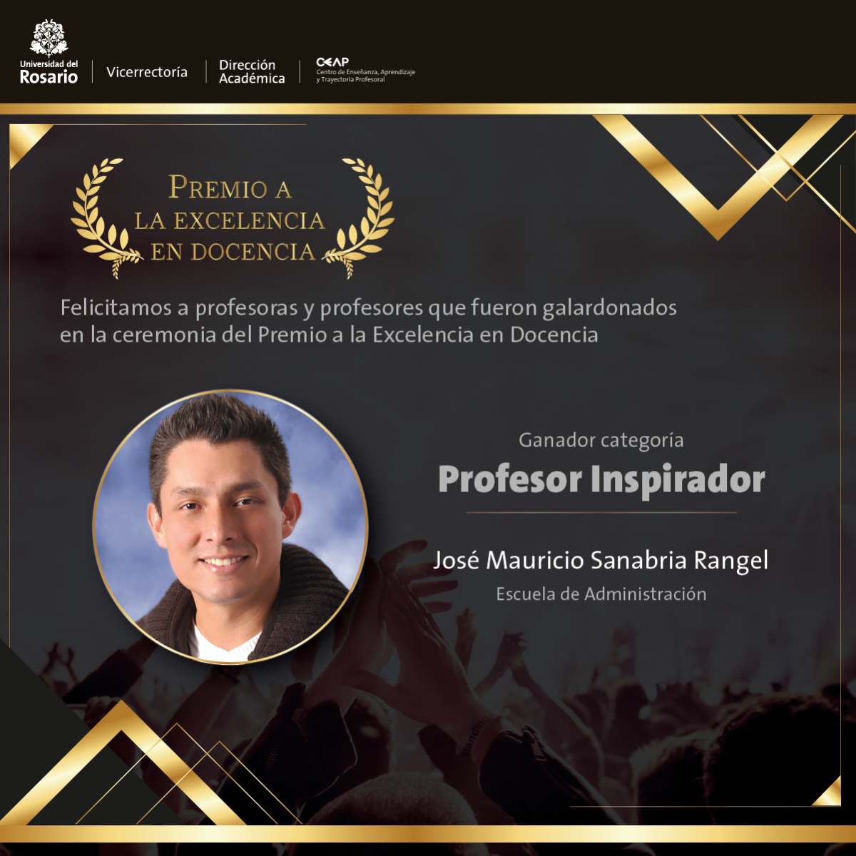 Para la Universidad del Rosario es de gran alegría saber que cuenta con profesores comprometidos con el proceso de aprendizaje y enseñanza de los estudiantes Rosaristas. Felicita a los ganadores, a los 165 nominados y a todo el cuerpo profesoral que realiza esta labor en el Rosario porque sin ellos la Universidad no estaría entre los mejores centros de educación del país.