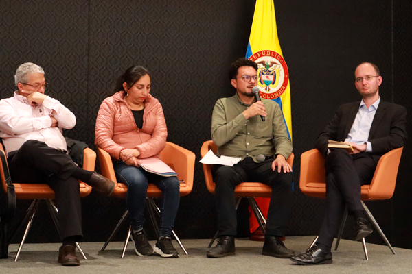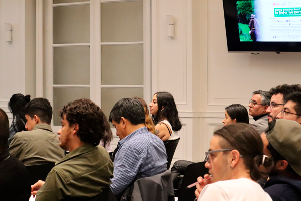 Laura Camila Barrios, directora de la Maestría en Conflicto, Memoria y Paz de la Universidad del Rosario, moderó el panel donde participaron Betsy Ruíz, lideresa del Espacio Territorial de Reincorporación de Aguabonita, La Motañita Caquetá; Paola Bolaños, lideresa Zona de Reserva Campesina de Cabrera, Sumapaz; Stefan Peters, director de Capaz; Gabriel Jhon Tobón, profesor de la Facultad de Estudios Ambientales y Rurales de la Pontificia Universidad Javeriana; y Jairo Baquero, profesor de la Escuela de Ciencias Humanas de la Universidad del Rosario.