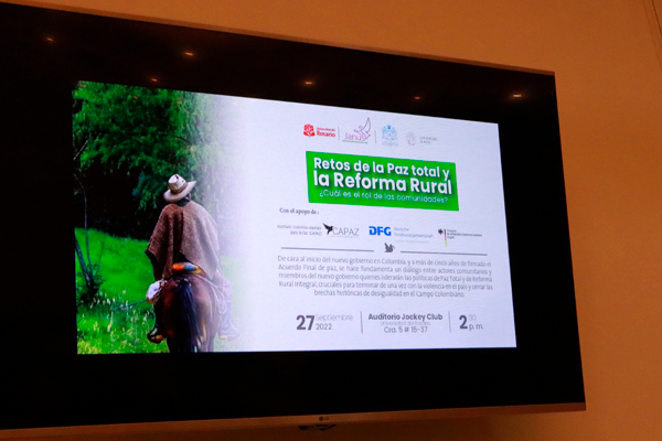 El conversatorio fue convocado por las universidades del Rosario, Javeriana y Leipzig en Alemania, en alianza con el Instituto Colombo-alemán para La Paz (CAPAZ), la Fundación Alemana para la Investigación Científica (DFG) y la Embajada Alemana en Colombia, con el objetivo de establecer un puente de diálogo entre el gobierno nacional, la academia y líderes comunitarios, de cara a los retos de la paz y la necesaria transformación del campo desde una reforma rural integral en Colombia.