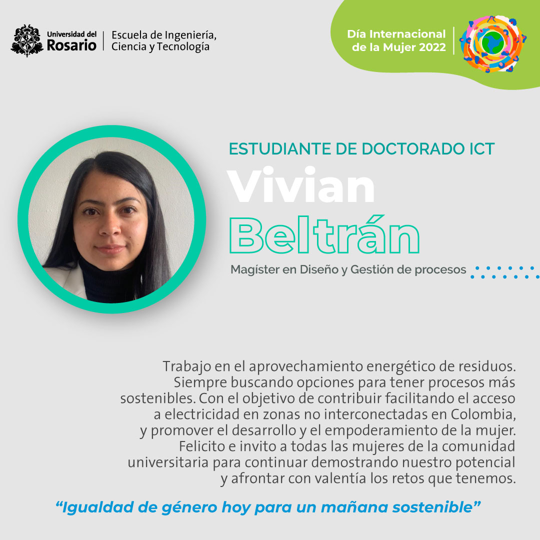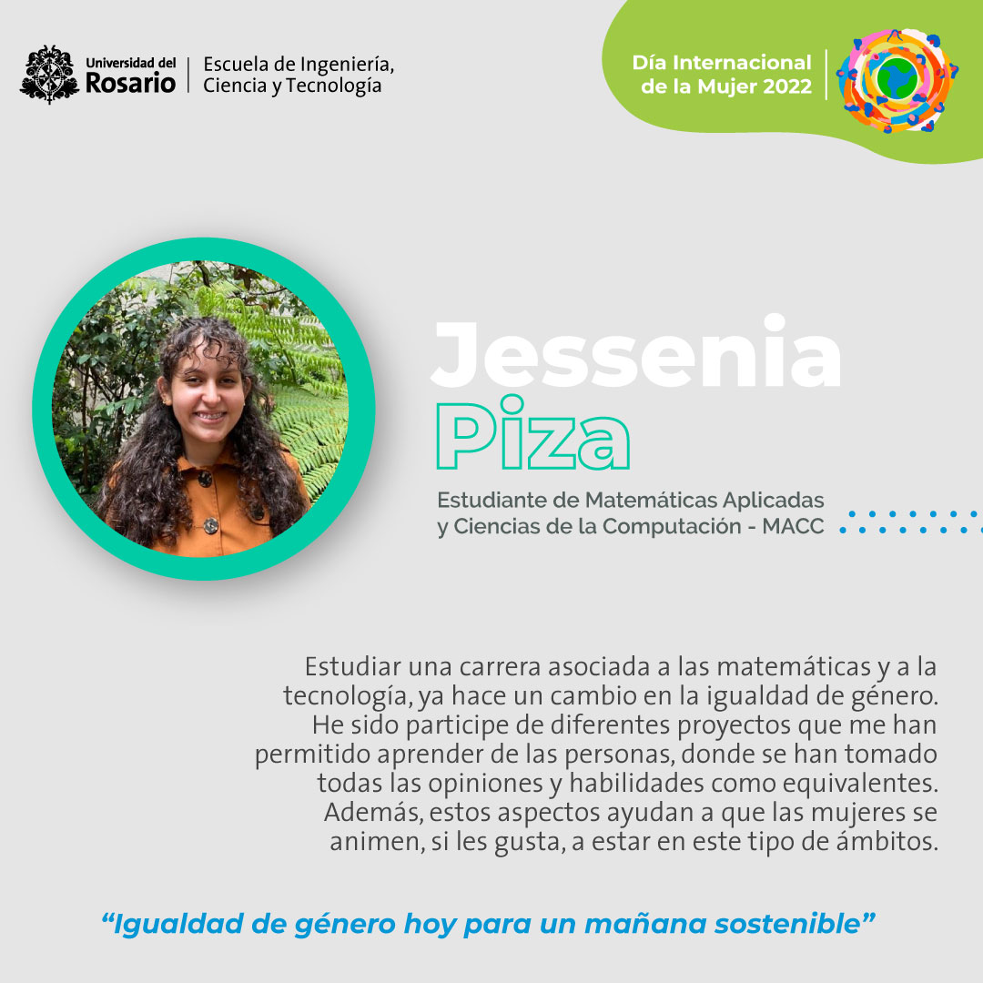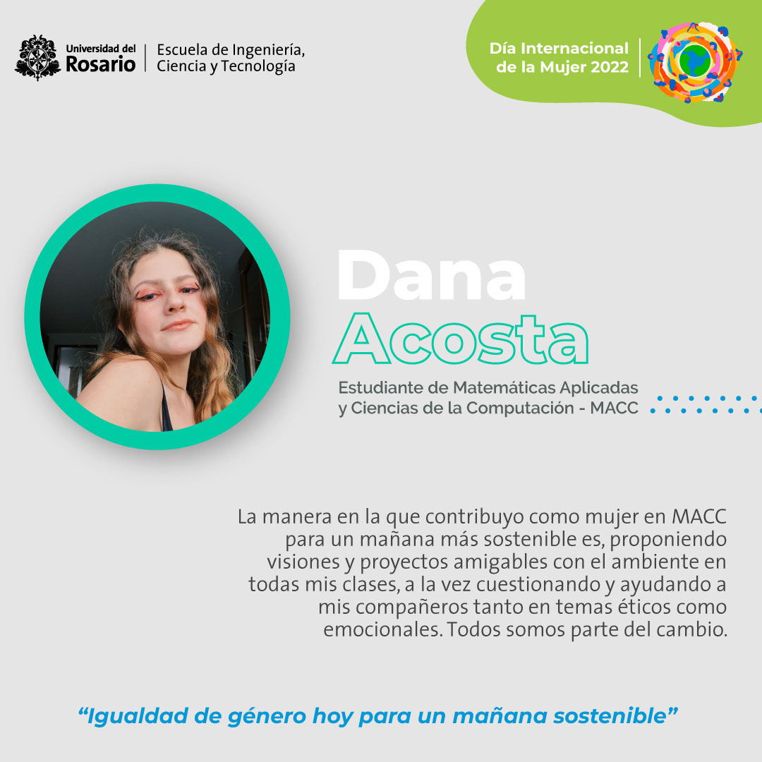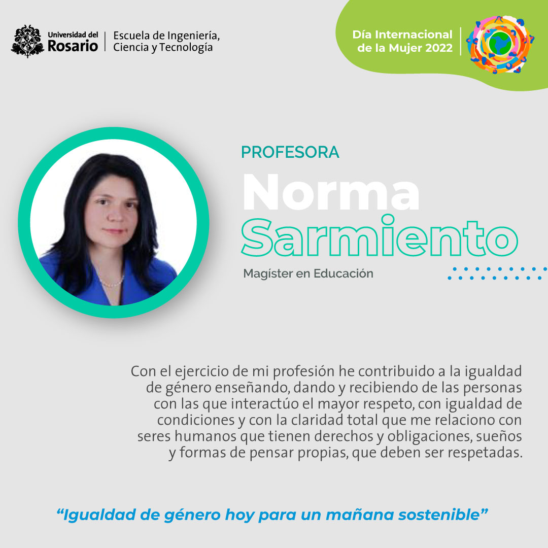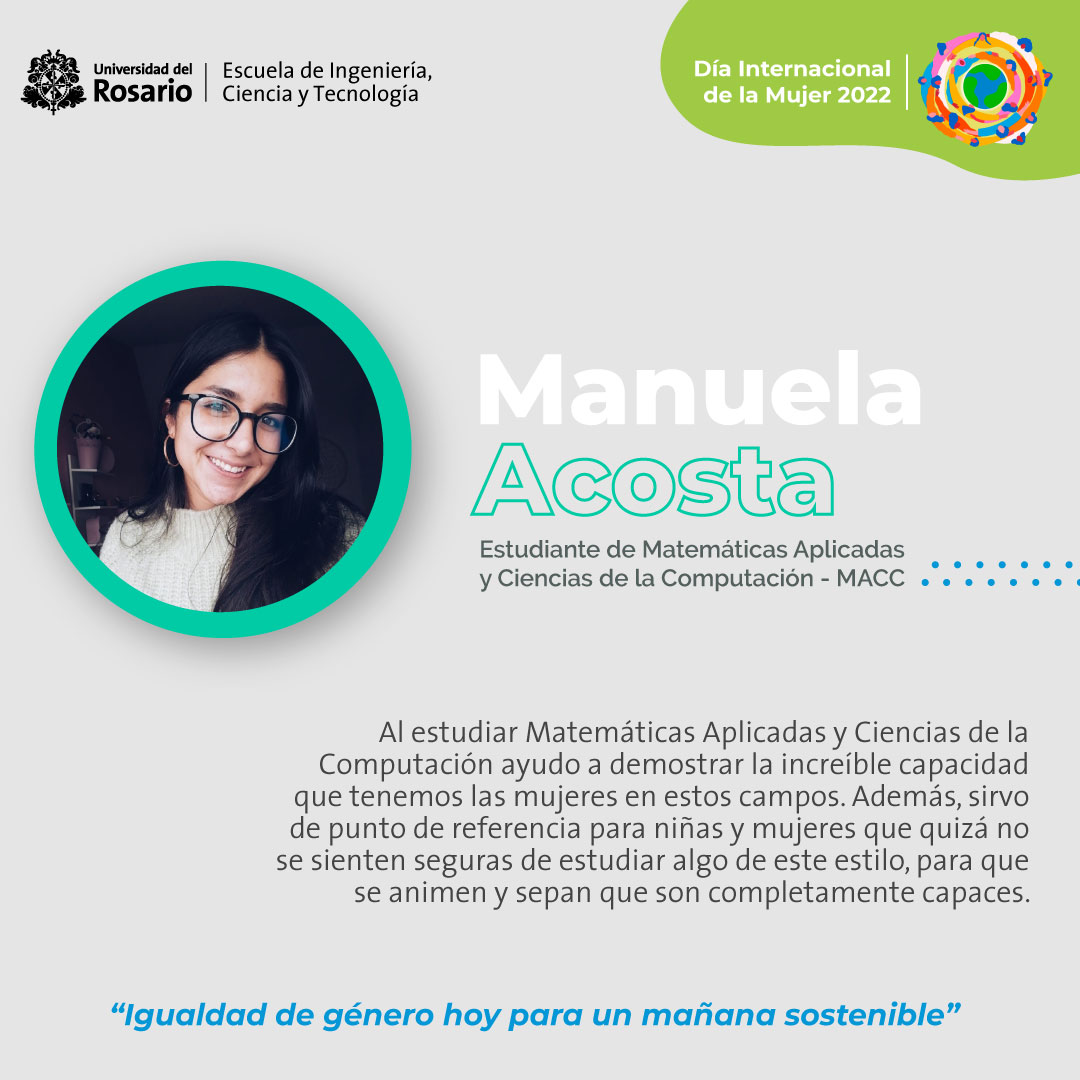 Como Escuela de Ingeniería, Ciencia y Tecnología (EICT) de la Universidad del Rosario, reconocemos la labor destacada realizada por nuestras estudiantes, profesoras, científicas y colaboradoras en áreas STEM (Science, Technology, Engineering and Mathematics), celebramos y valoramos su aporte por la igualdad de género hoy para un mañana sostenible.