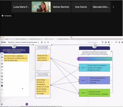 La parte teórica de este componente se centró en recordar que la innovación transformativa debe ser inclusiva, promover la participación, el aprendizaje profundo y un cambio sistémico y que la meta es transformar las prácticas actuales y construir una transición hacía un régimen sustentable y más equitativo. De esta manera, Se entiende que estos son cambios generacionales. Razón por la que se debe replantear la manera de evaluar las consecuencias. Pues estos no son experimentos cortos de resultados medibles en el corto plazo.