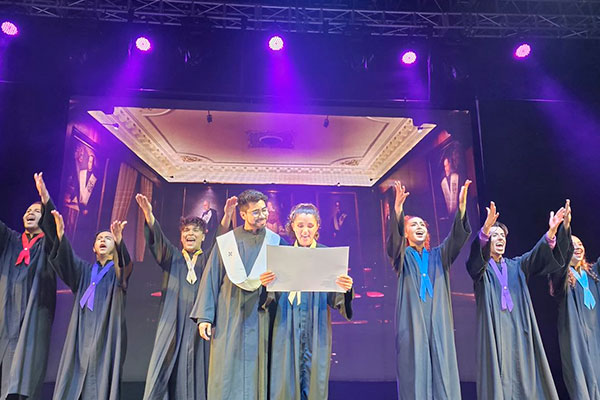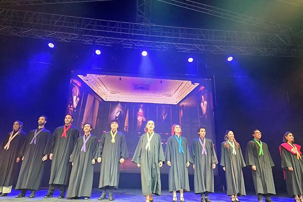 El pasado 6 de octubre se estrenó el show musical Nova et Vetera, una producción de URosario Misi enmarcada en la celebración de los 370 años de la Universidad del Rosario. Esta puesta en escena reunió lo mejor del talento Rosarista: 17 artistas en escena, entre estudiantes y profesores de Teatro Musical, exaltan la trayectoria histórica de la institución a través del teatro, la música y las luces.