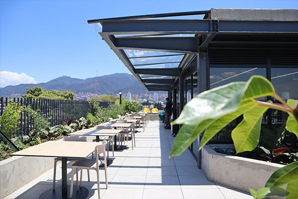 En el sexto y último piso se encuentra una terraza verde con una gran vista a los cerros orientales, donde los estudiantes podrán realizar ejercicios contemplativos. Esta terraza estará condicionada con espacios para el trabajo grupal y el esparcimiento, y estará disponible una propuesta de venta de alimentos donde los estudiantes podrán practicar la alimentación equilibrada y consciente.