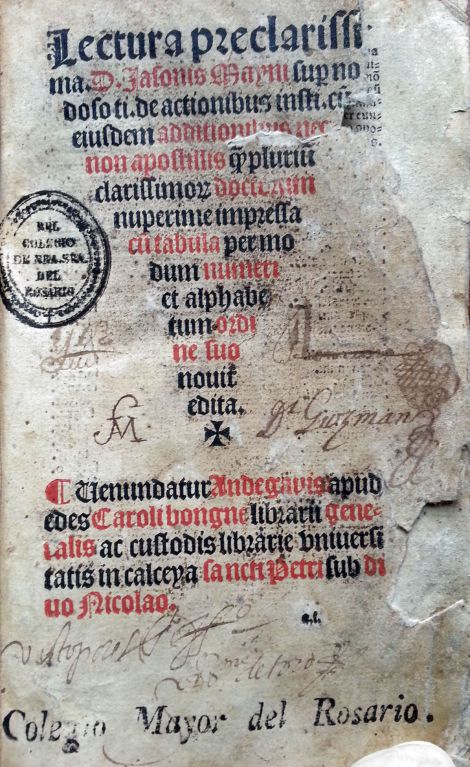 Joyas bibliográficas de la biblioteca antigua del Rosario: Jasón de Mayno