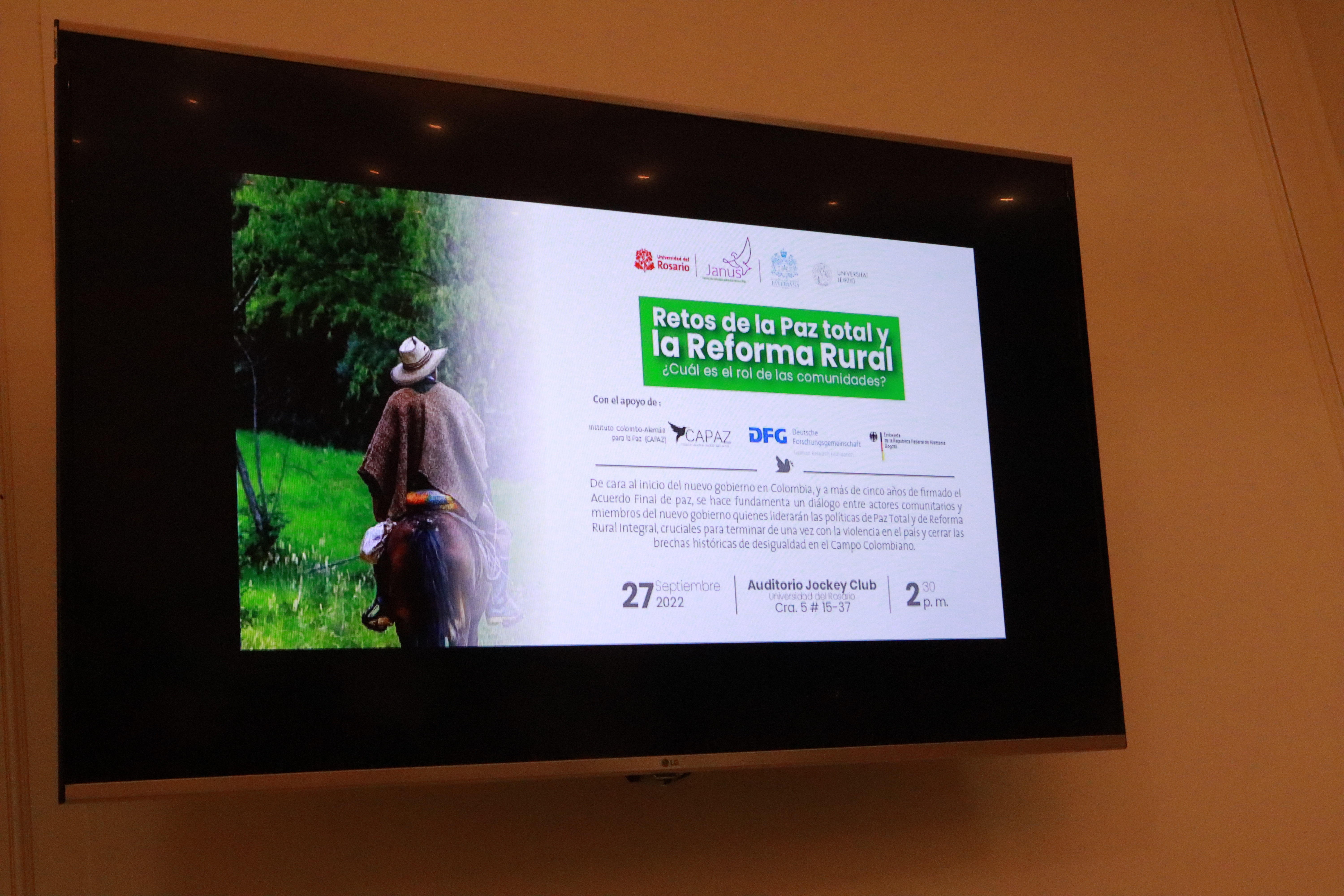 El conversatorio fue convocado por las universidades del Rosario, Javeriana y Leipzig en Alemania, en alianza con el Instituto Colombo-alemán para La Paz (CAPAZ), la Fundación Alemana para la Investigación Científica (DFG) y la Embajada Alemana en Colombia, con el objetivo de establecer un puente de diálogo entre el gobierno nacional, la academia y líderes comunitarios, de cara a los