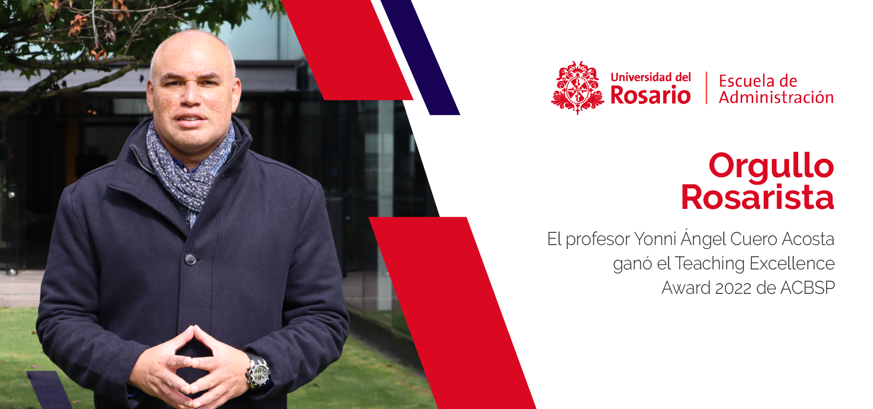 Yonni Ángel Cuero Acosta, profesor de la Escuela de Administración de la Universidad del Rosario, ganó el Teaching Excellence Award 2022 de ACBSP...