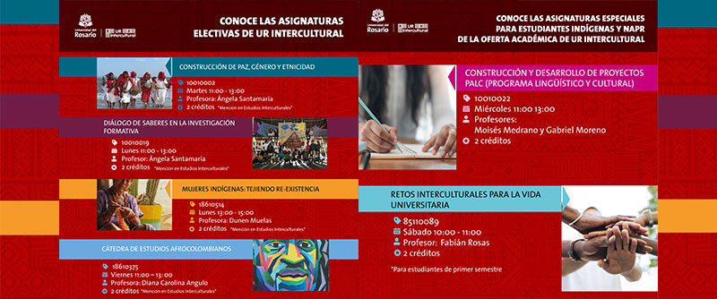 UR Intercultural es un programa que busca apoyar y articular todas las iniciativas de valorización de la diversidad étnica y cultural en la Universidad del Rosario. Contamos con iniciativas en diversos campos de acción: docencia, investigación, extensión, internacionalización, divulgación, promoción, programas de apoyo para estudiantes de los diferentes grupos étnicos, entre otras.